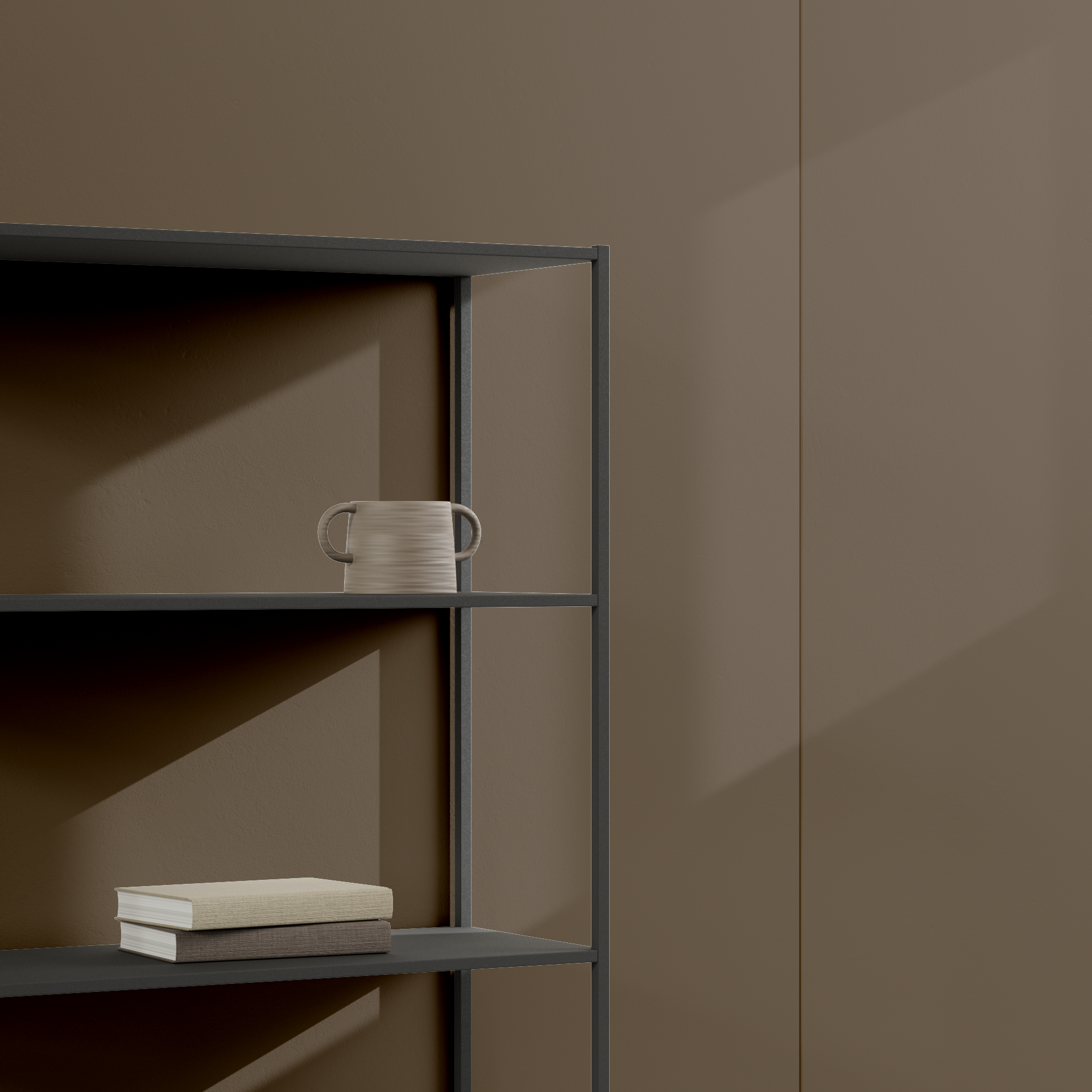 Cedar brown in a lighter tint. When the dust settles and its just you and your 4 walls. Earthy, elegant, easy. This relaxing colour looks great with warm lighting.