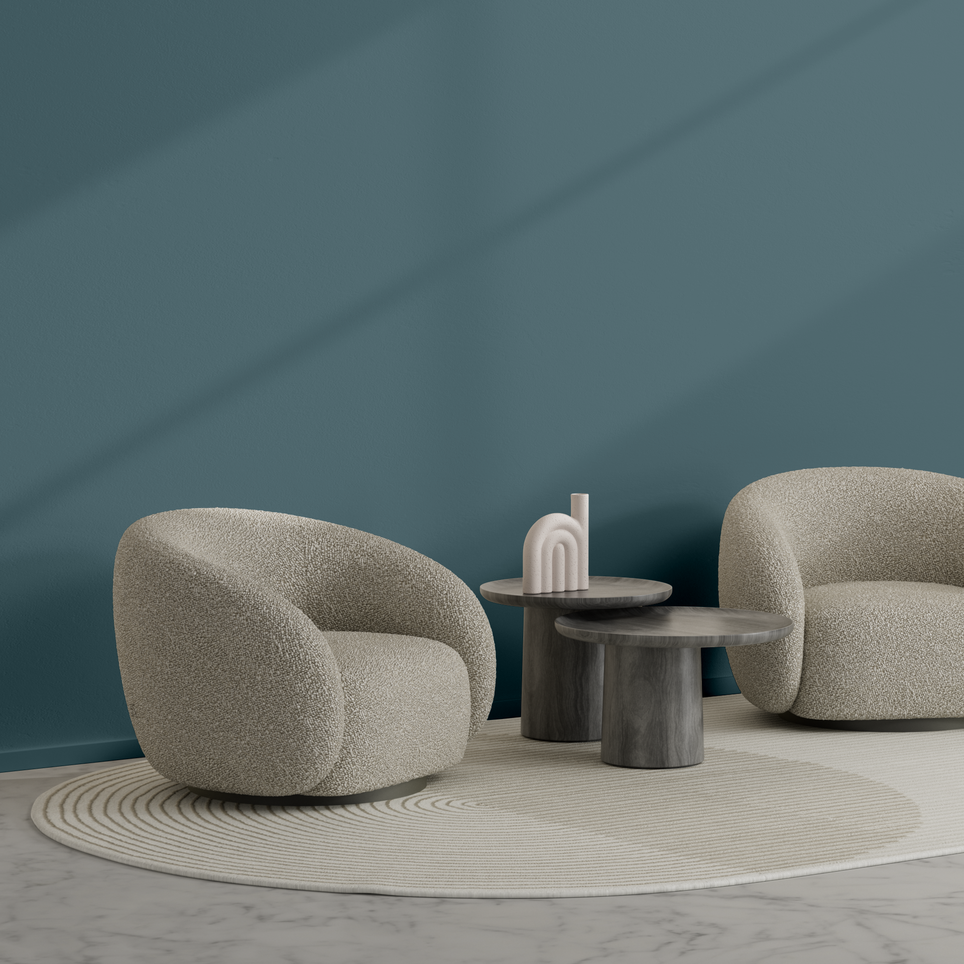 A deep grey with cyan tones. When the fog lifts, let the cool breeze envelope you. Very much in charge, this colour looks great with light oceanic colours or simply with crisp whites.